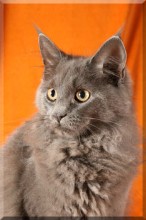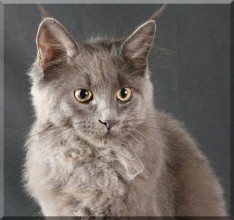 Aimy vom Main RiverKatze, 17. Juni 2011blau  Aimy wird auch die Zucht verstärken. Sie hat eine wunderschöne Blau-Zeichnung und ist eine kräftige Kätzin. Auch sie wird in diesem Jahr verstärkt auf Ausstellungen zu sehen sein. Wir sind auf die Ergebnisse gespannt und hoffen, sie im Oktober mit auf der World Show zu präsentieren.